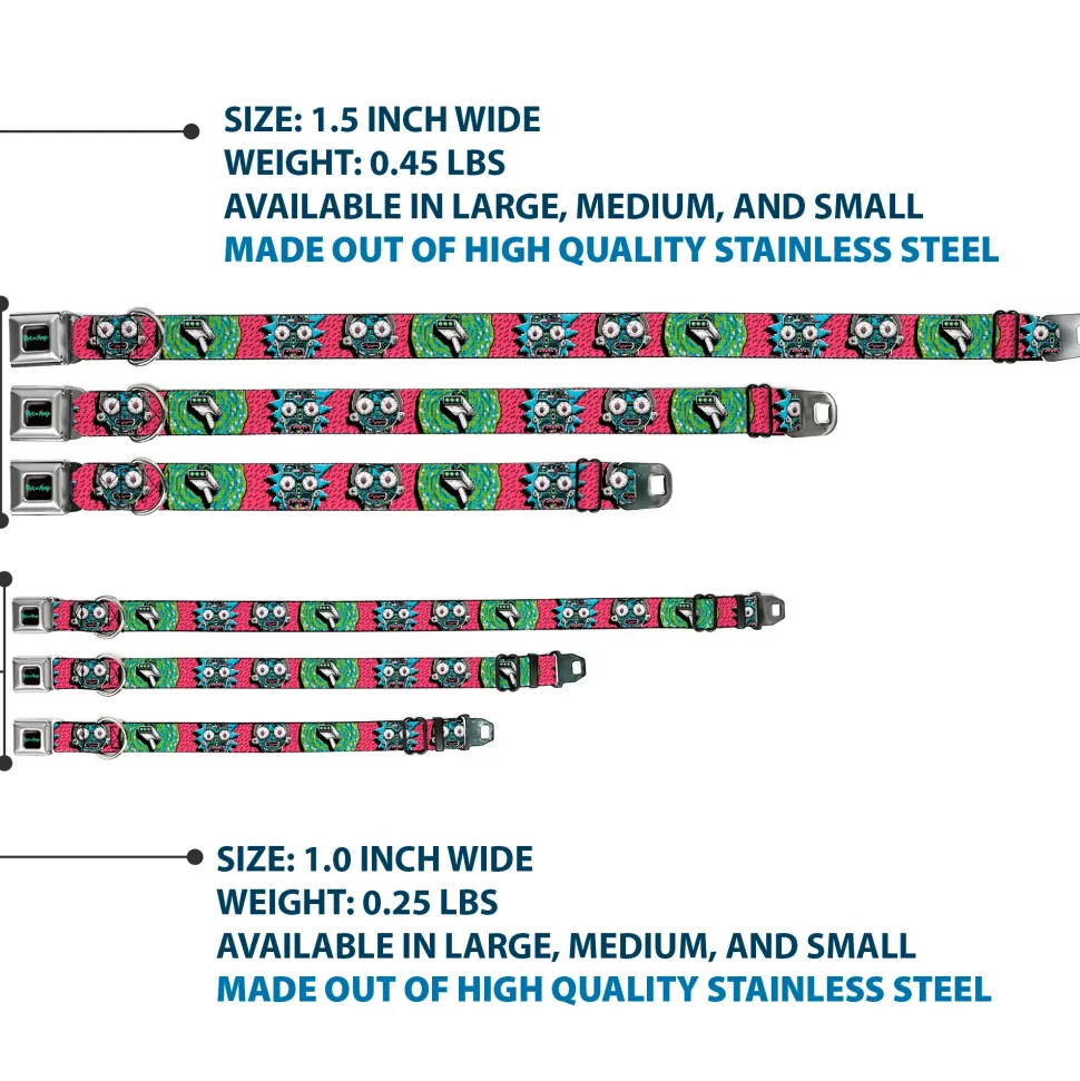 Your dog will be the talk of the town when people notice they’re wearing this awesome SeatBelt Dog Collar! Made from high-density polyester and durable steel components, this collar is built to last. It features beautiful vibrant artwork. The buckle is a miniature authentic SeatBelt Buckle, so you press the center button to release the clasp. This product is Made in USA by Buckle-Down Inc. and officially licensed by Rick and Morty.