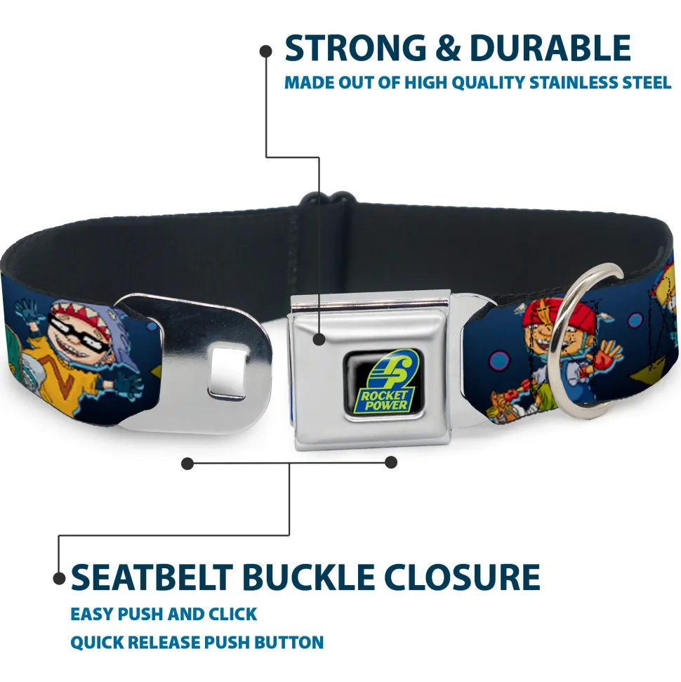 ROCKET POWER RP Logo Full Color Black/Green/Blue Seatbelt Buckle Collar – Rocket Power 4-Character Action Poses/Shapes Cool Gray/Multi Color