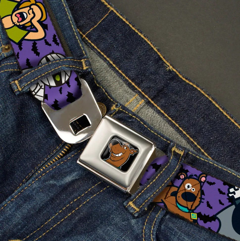 Scooby Doo Face Full Color Black Seatbelt Belt – Mini Scooby Doo Halloween/Bats Purple/Black Webbing