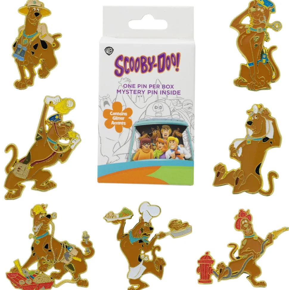 - Each Scooby Doo Collectible Pin Blind Box contains a hard enamel pin featuring glitter accents bearing a random mystery Scooby Doo Pose!