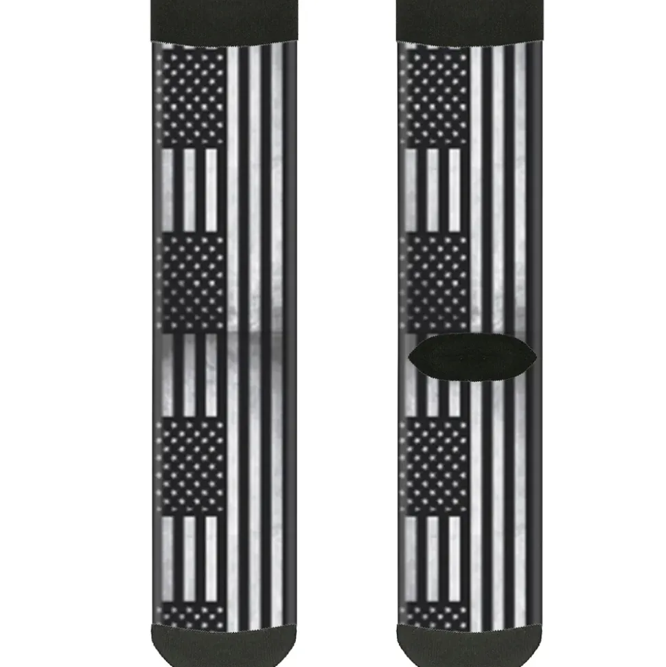 Sock Pair - Polyester - American Flag Weathered Black White - CREW
