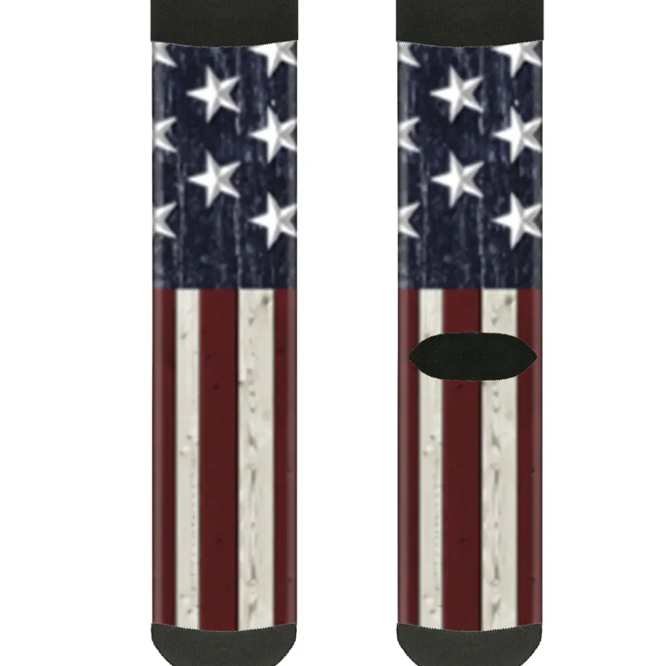 Sock Pair – Polyester – Americana Rustic Stars & Stripes – CREW