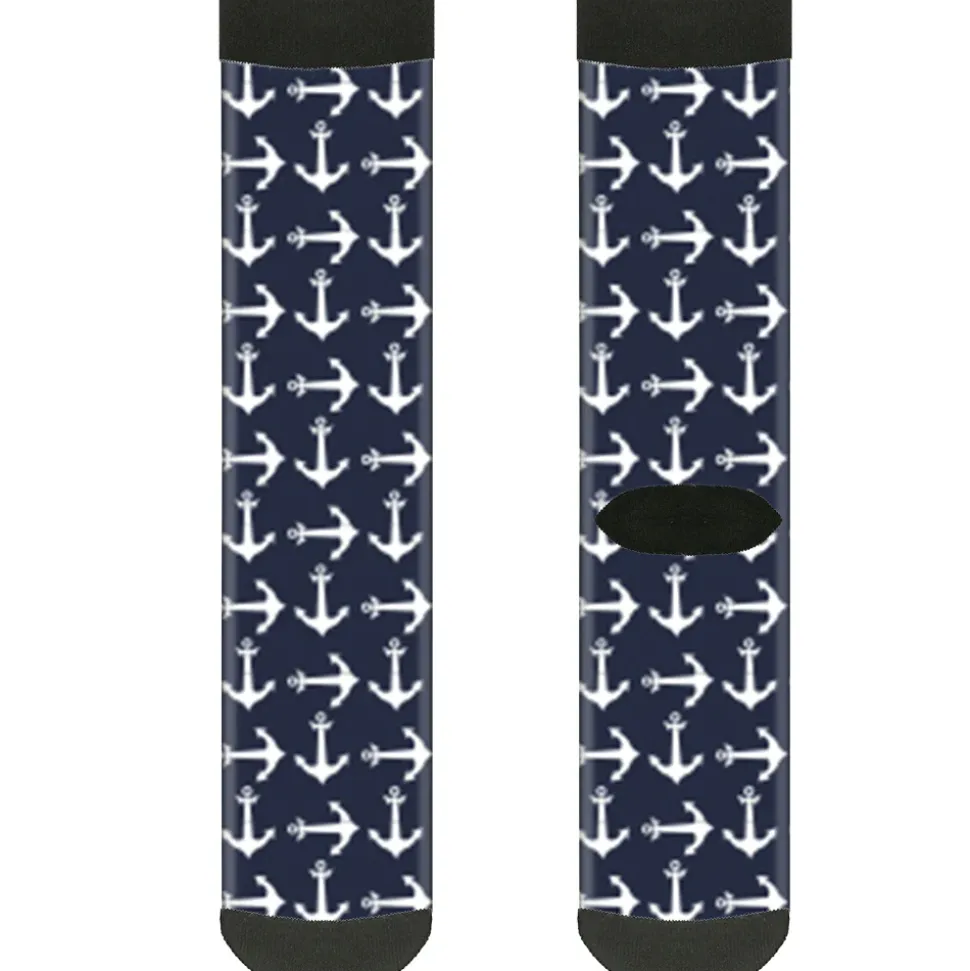 Sock Pair - Polyester - Anchors Navy White - CREW