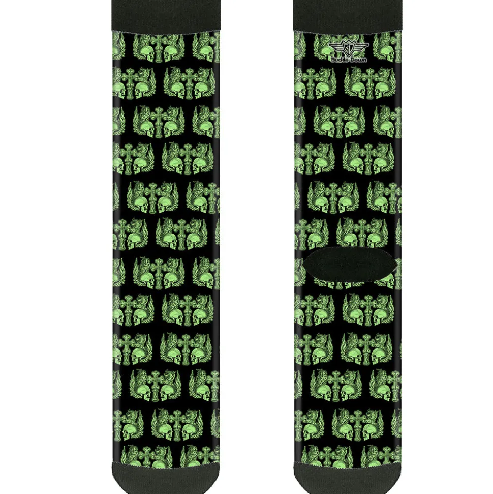 Sock Pair - Polyester - BD Skulls w/Wings Black/Green - CREW
