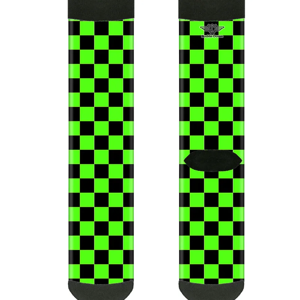 Sock Pair - Polyester - Checker Black/Neon Green - CREW
