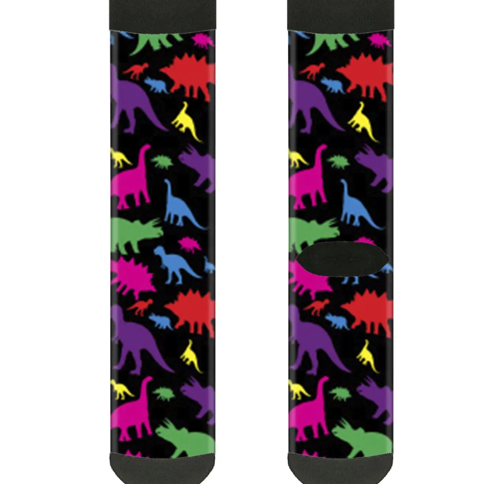Sock Pair - Polyester - Dinosaur Silhouette Black Multi Color - CREW
