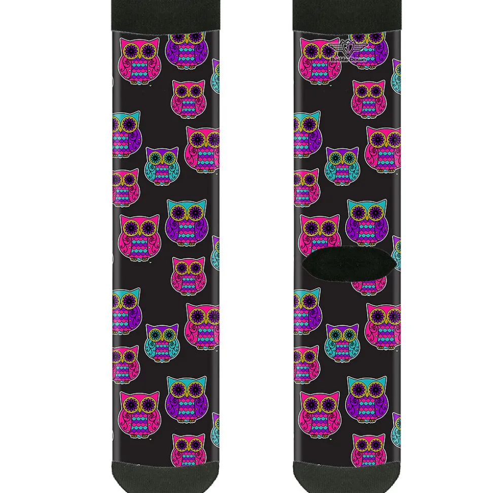 Sock Pair - Polyester - Owls Black/Fuchsia/Purple/Turquoise - CREW