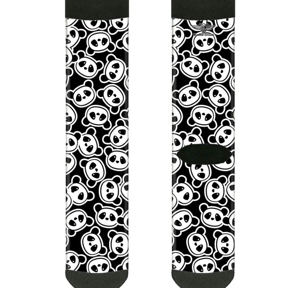Sock Pair – Polyester – Scattered Panda Bear Cartoon2 Black/White – CREW