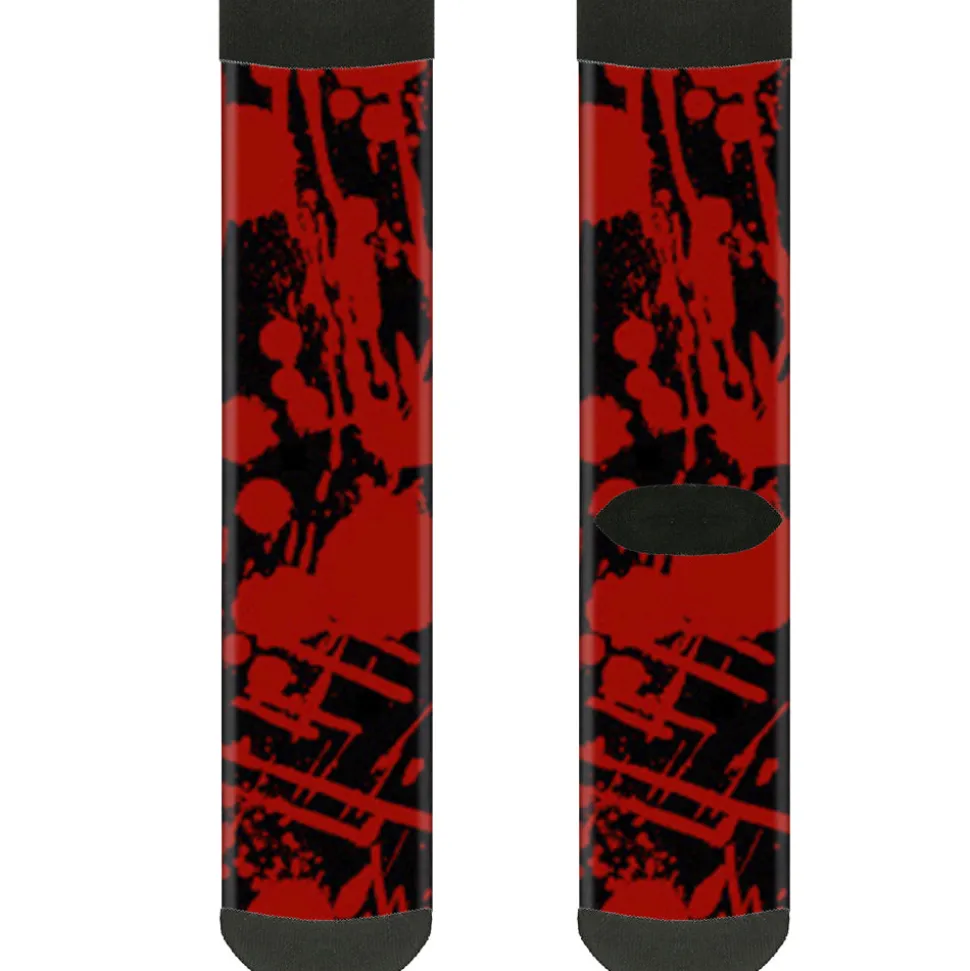 Sock Pair - Polyester - Splatter Black Red - CREW