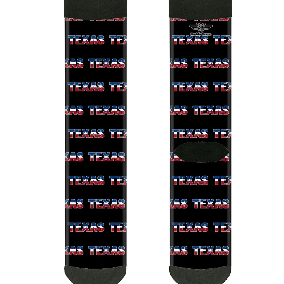 Sock Pair - Polyester - TEXAS w/Star Black/White/Blue/Red - CREW