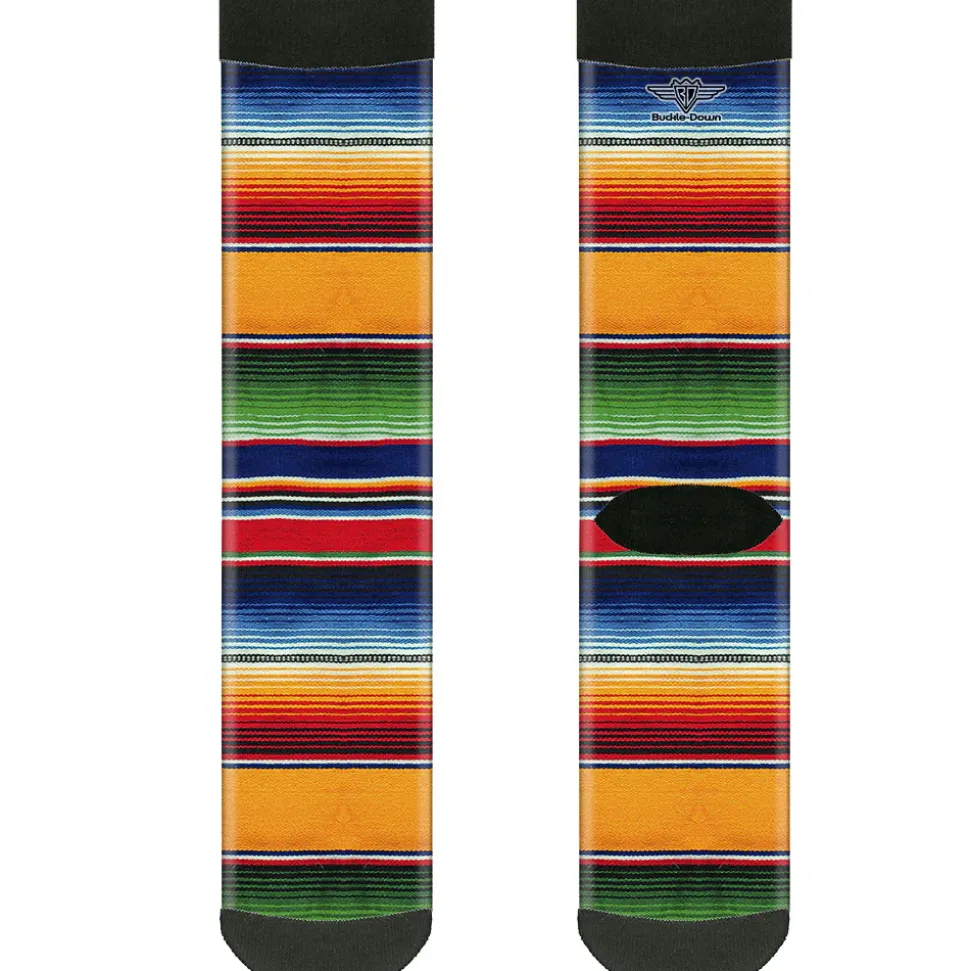 Sock Pair - Polyester - Zarape2 Vertical Multi Color Stripe - CREW