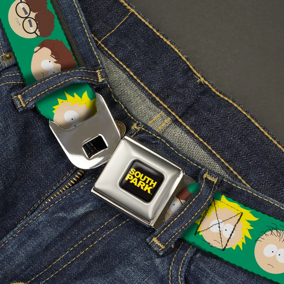 SOUTH PARK Title Logo Full Color Black/Yellow Seatbelt Belt – South Park Kids Faces Green Webbing