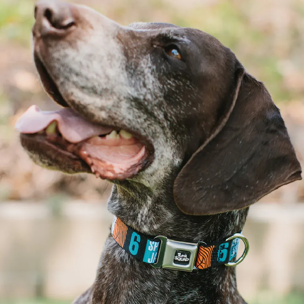 Space Jam 2 TUNE SQUAD Logo Full Color Black/White Seatbelt Buckle Collar – SPACE JAM Number 6 Blocks Black/Turquoise/White/Red
