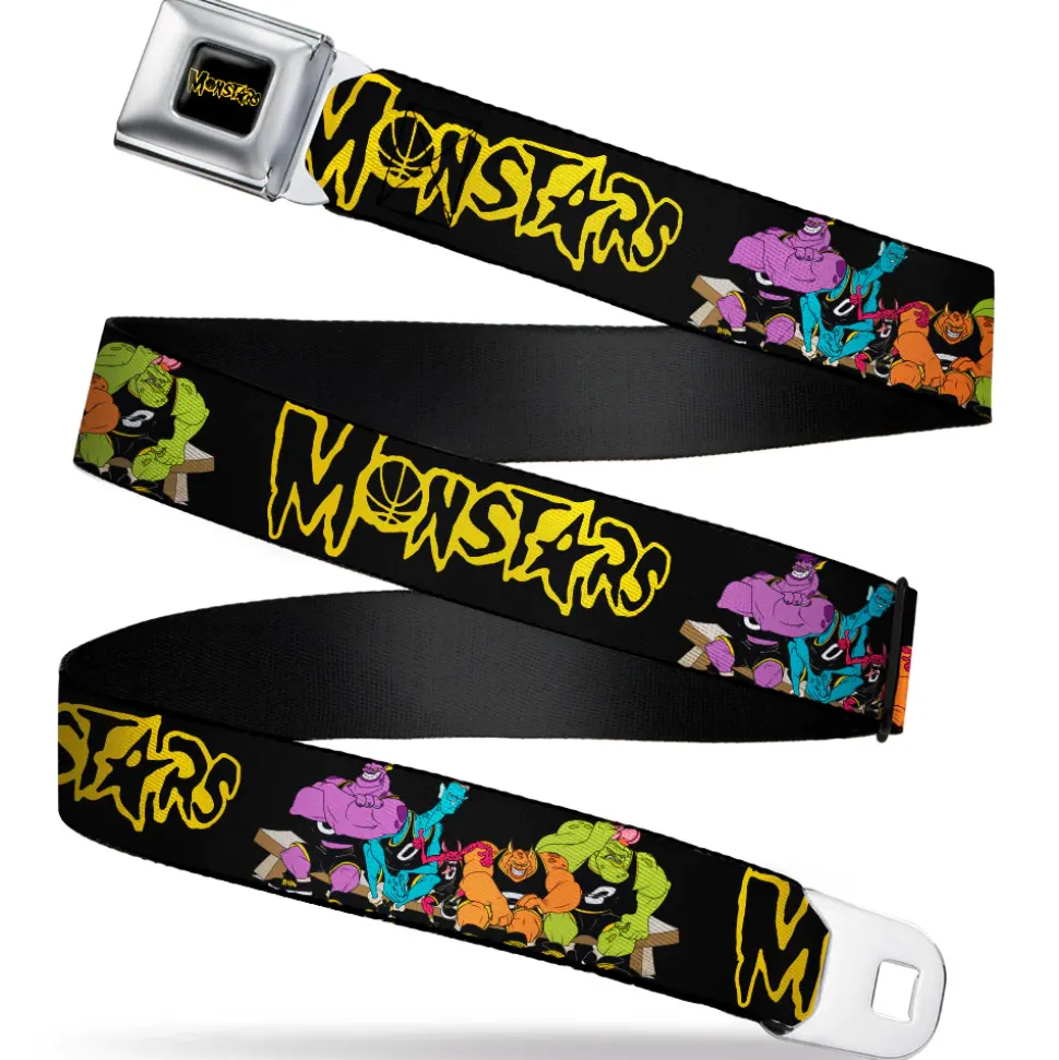 Space Jam MONSTARS Logo Black/Yellow Seatbelt Belt – Space Jam MONSTARS Logo/5-Character Group Pose Black/Yellow Webbing