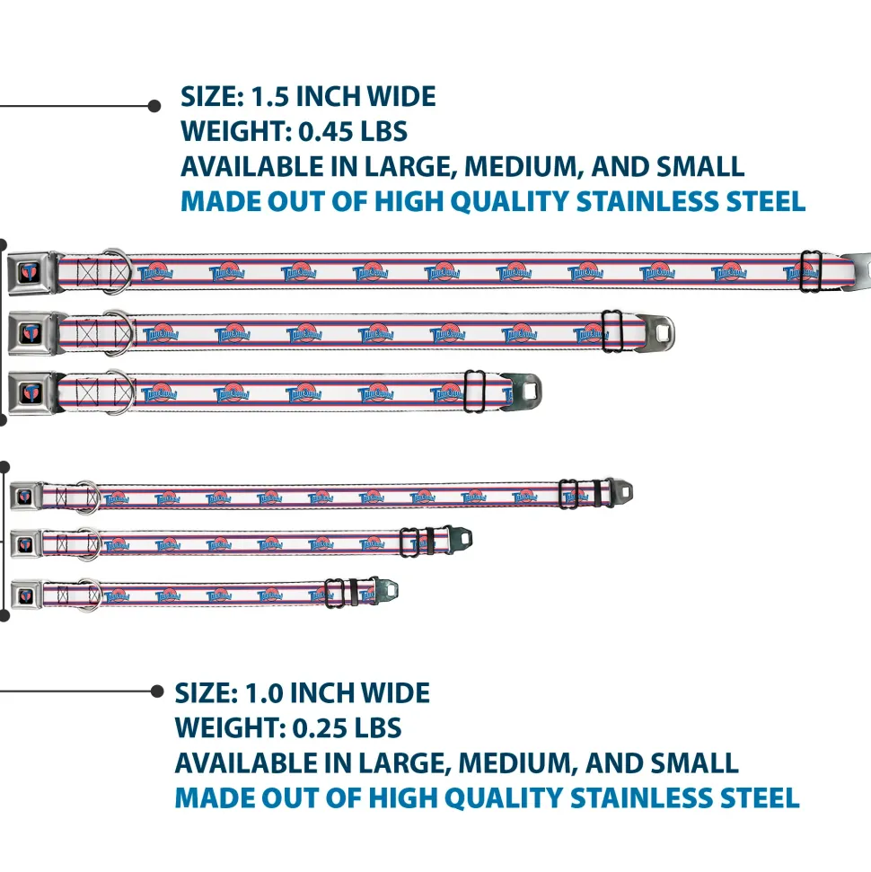 Your dog will be the talk of the town when people notice they’re wearing this awesome SeatBelt Dog Collar! Made from high-density polyester and durable steel components, this collar is built to last. It features beautiful vibrant artwork. The buckle is a miniature authentic SeatBelt Buckle, so you press the center button to release the clasp. This product is Made in USA by Buckle-Down Inc. and officially licensed by Looney Tunes.