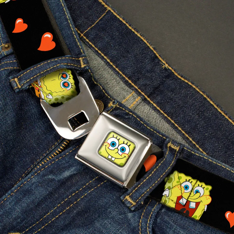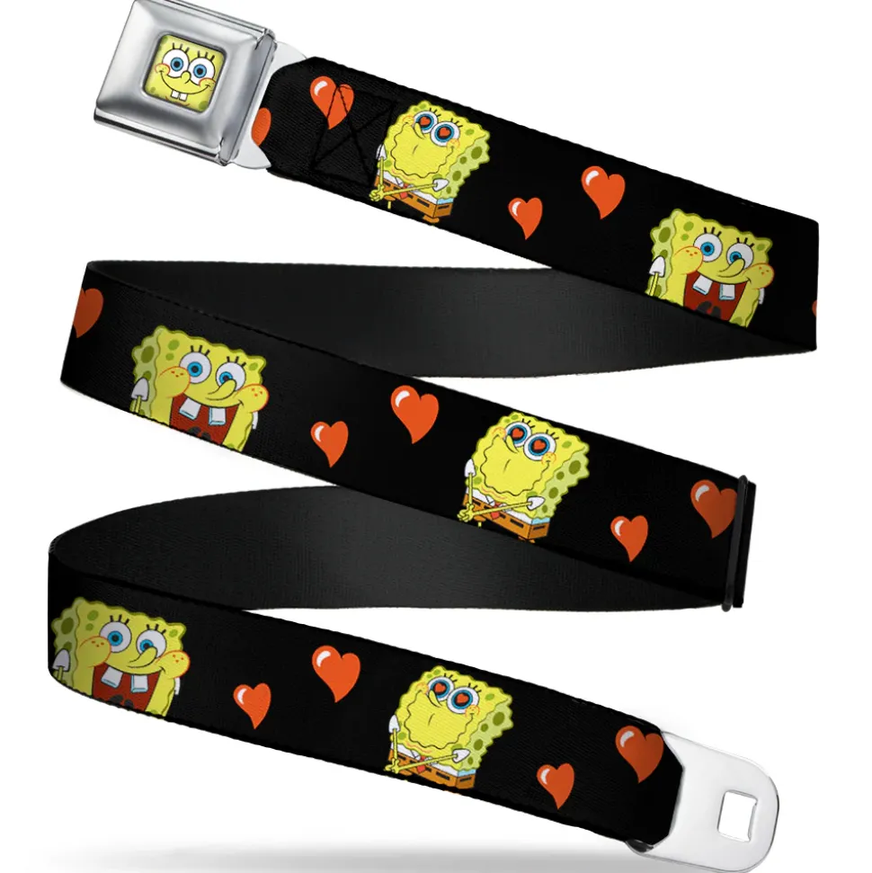 Sponge Bob Face CLOSE-UP Full Color Seatbelt Belt – SpongeBob Love Eyes/Hearts Black/Red Webbing