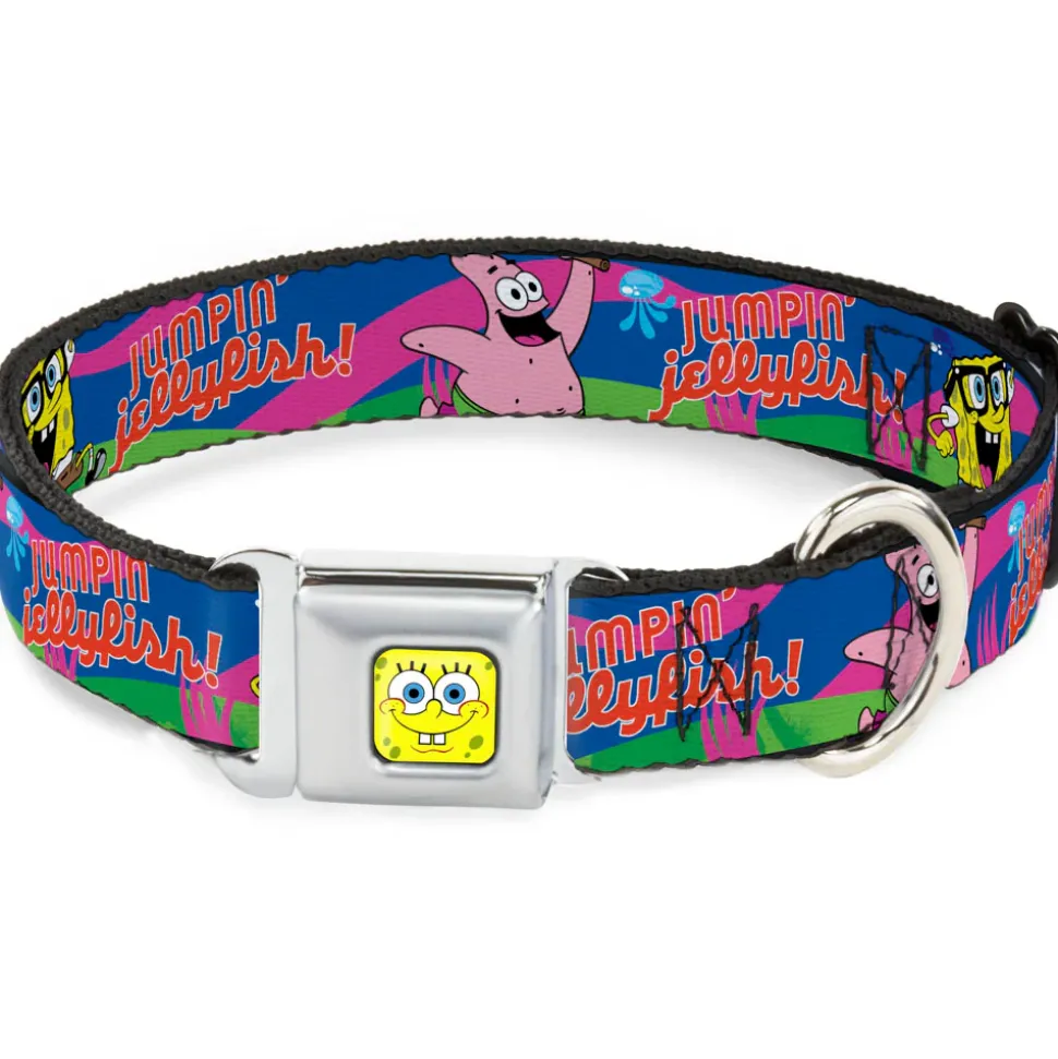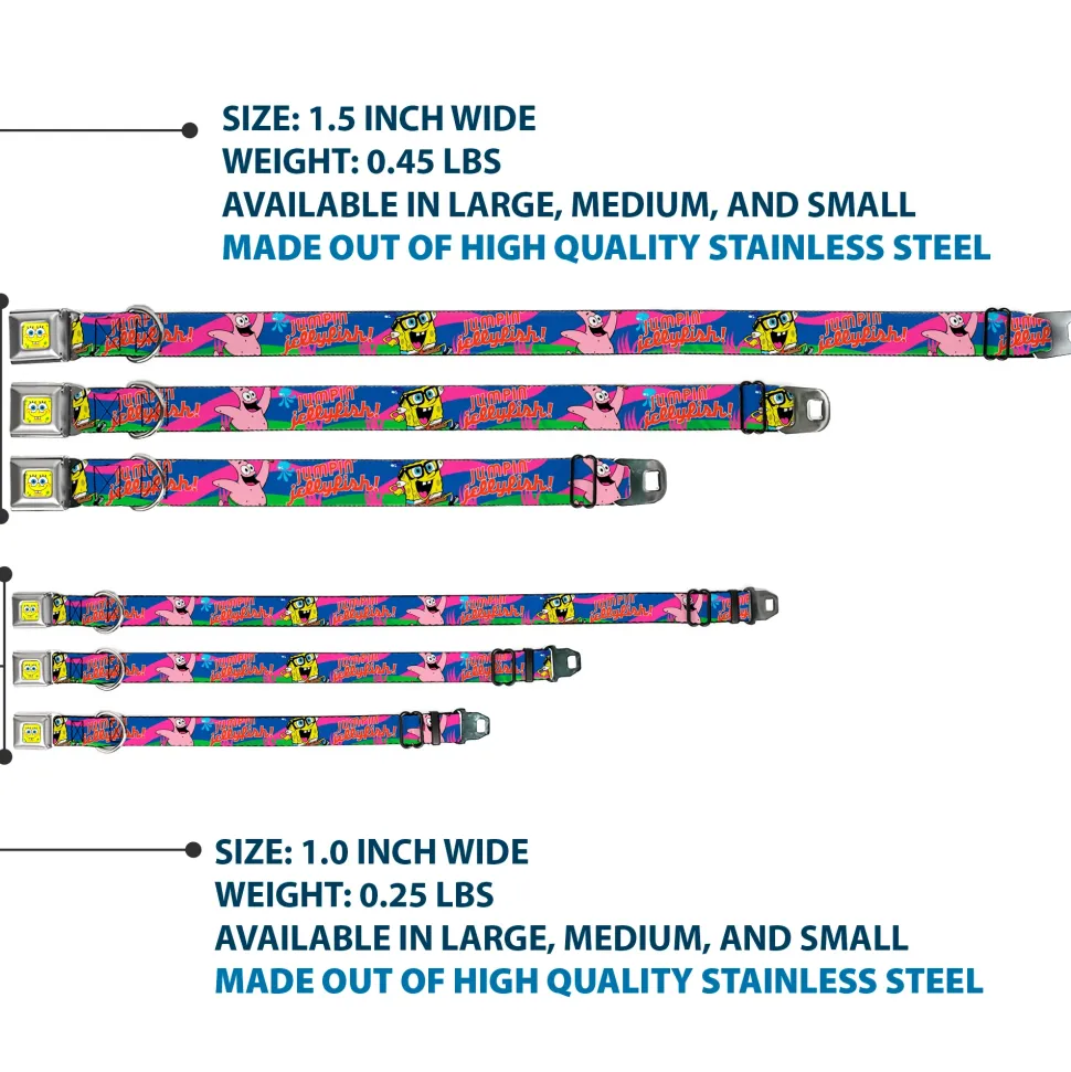 SpongeBob Face CLOSE-UP Full Color Seatbelt Buckle Collar – Nerd SpongeBob & Patrick Starfish Running JUMPIN' JELLYFISH! Multi Color/Red