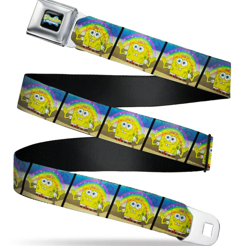 SpongeBob SquarePants Logo Full Color Black/Blues Seatbelt Belt – SpongeBob SquarePants Smiling Rainbow Pose Blocks Webbing