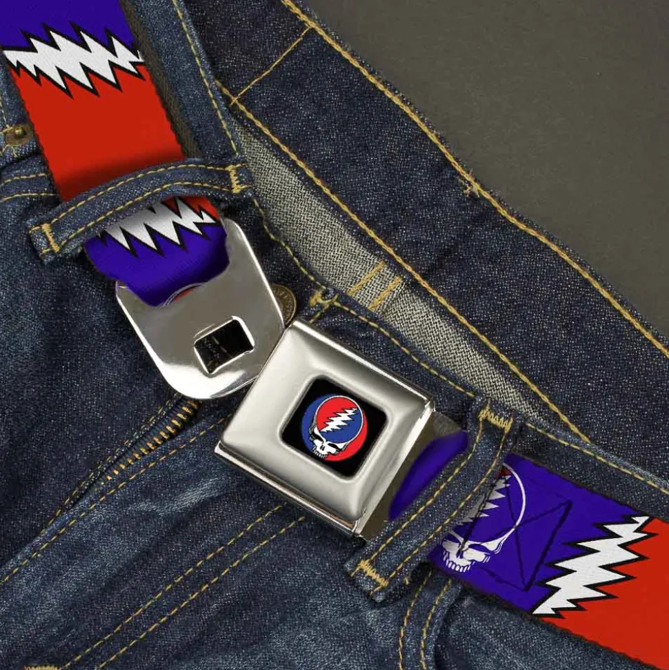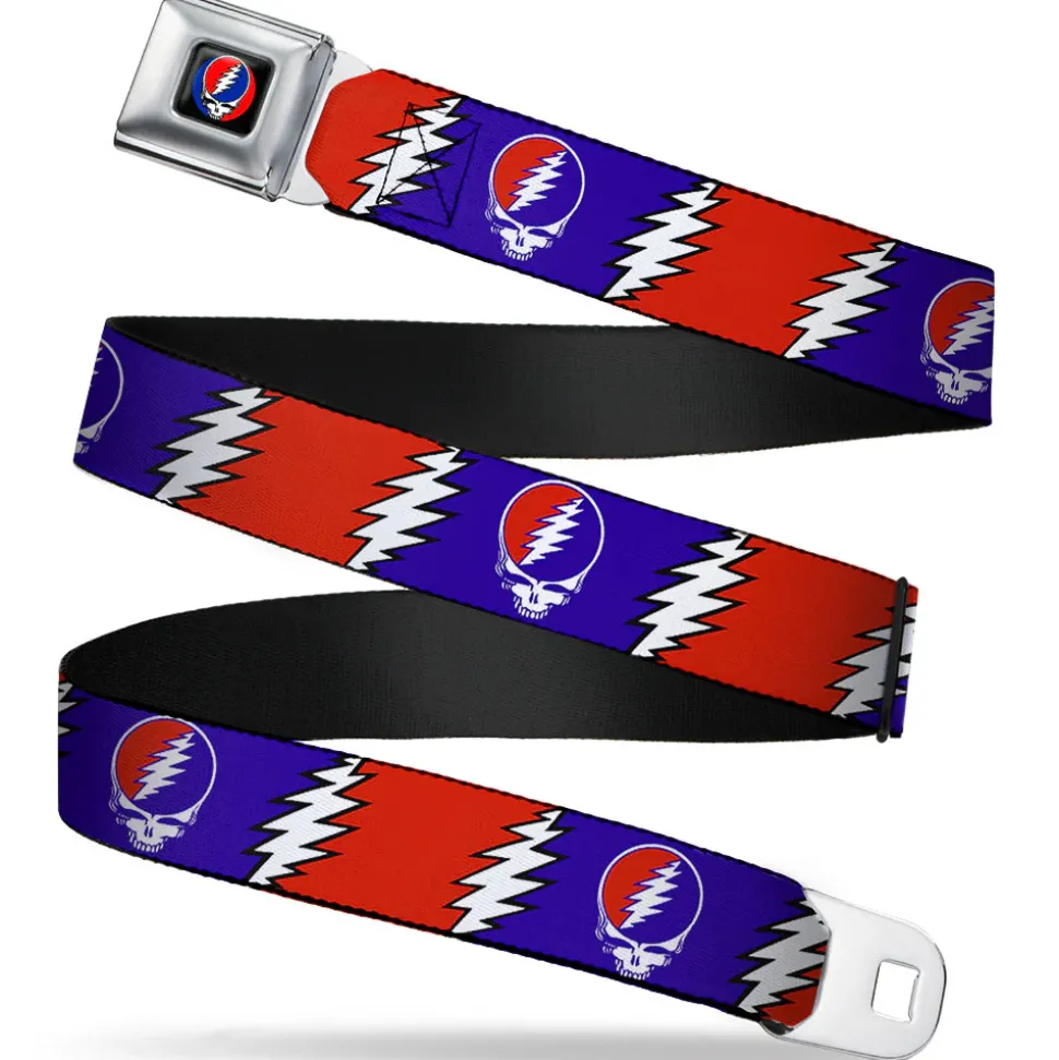 Steal Your Face Seatbelt Belt – Steal Your Face w/Lightning Bolt Repeat Red/White/Blue Webbing