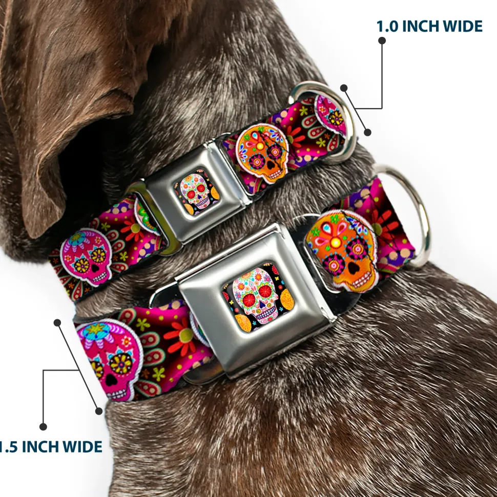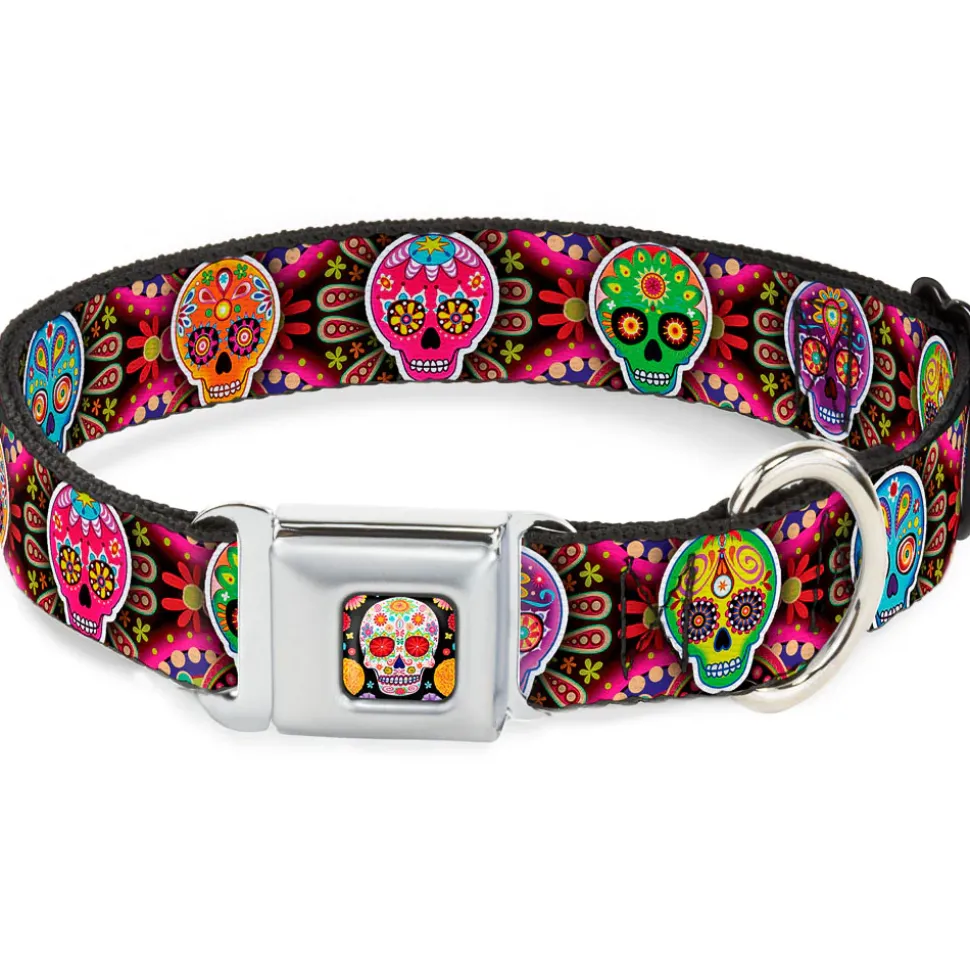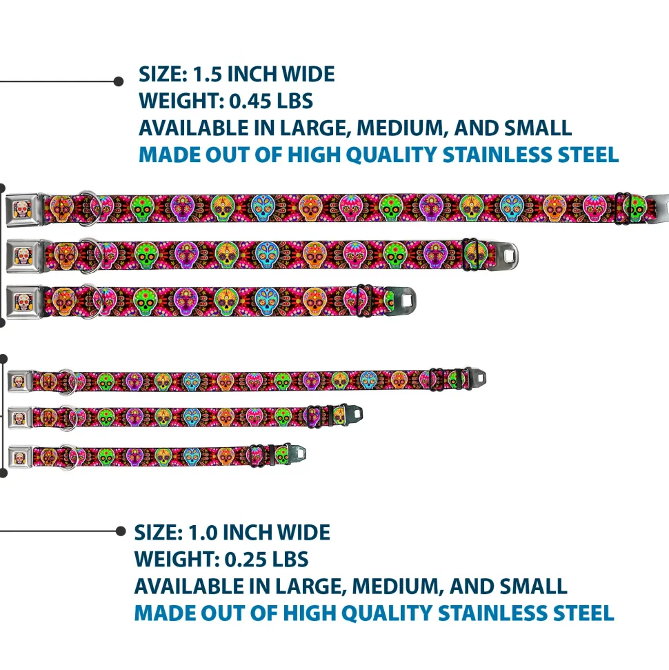 Your dog will be the talk of the town when people notice they’re wearing this awesome SeatBelt Dog Collar! Made from high-density polyester and durable steel components, this collar is built to last. It features beautiful vibrant artwork. The buckle is a miniature authentic SeatBelt Buckle, so you press the center button to release the clasp. This product is Made in USA by Buckle-Down Inc. and officially licensed by Thaneeya McArdle.