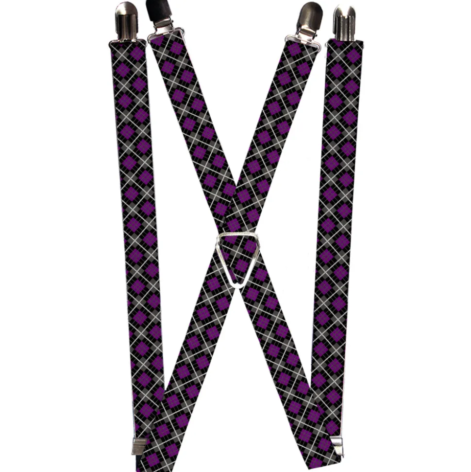 Suspenders – 1.0" – Argyle Black/Gray/Purple