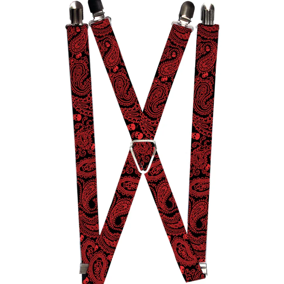 Suspenders – 1.0" – Bandana/Skulls Black/Red
