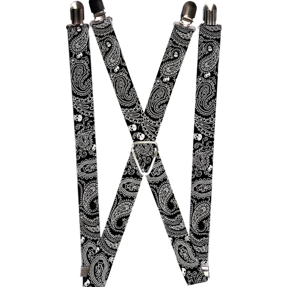 Suspenders – 1.0" – Bandana/Skulls Black/White