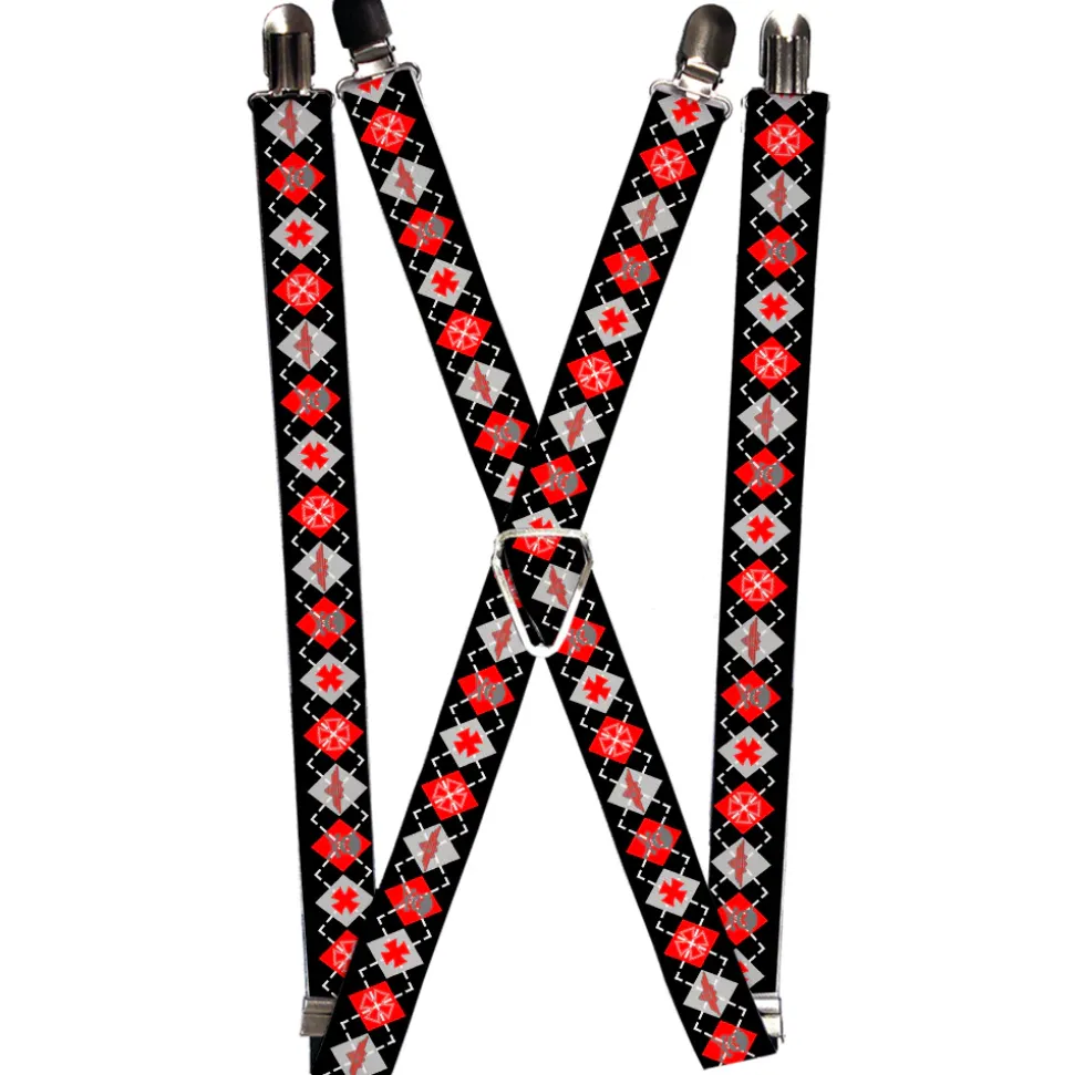 Suspenders - 1.0" - BD Argyle Black/Red/Gray