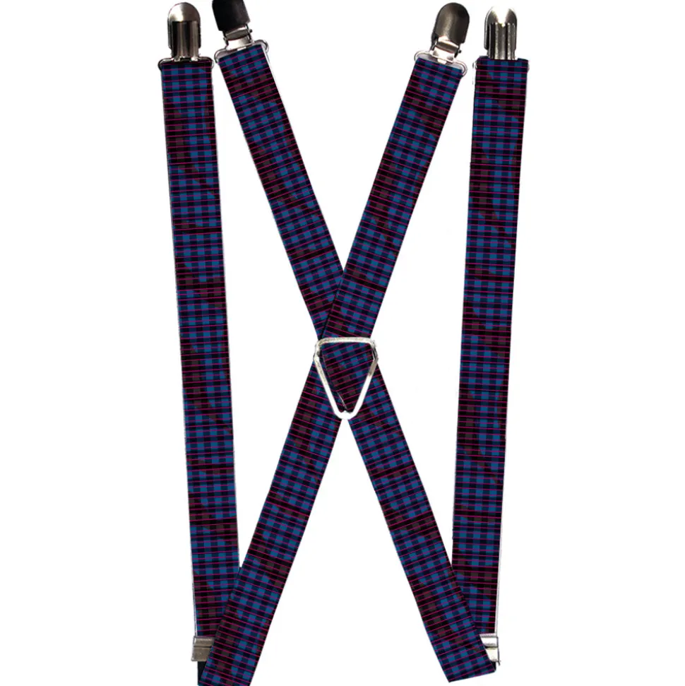 Suspenders - 1.0" - Buffalo Plaid Abstract White/Black/Turquoise