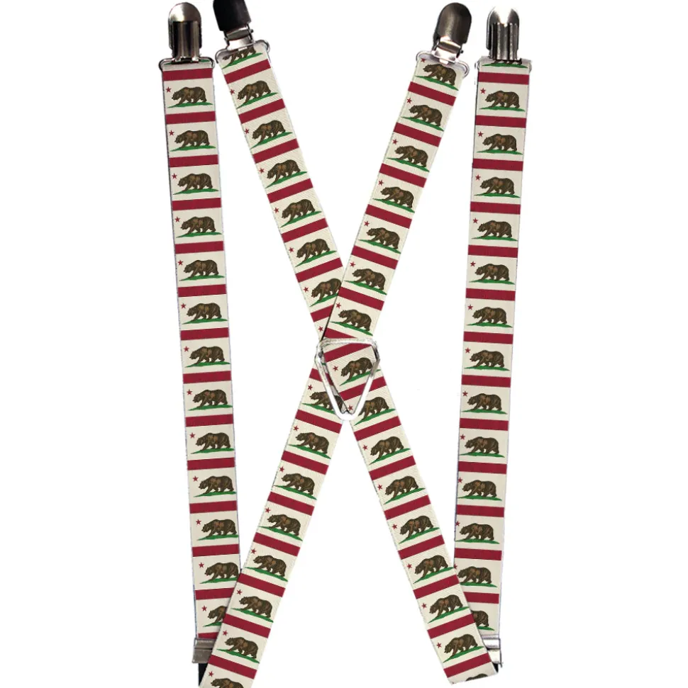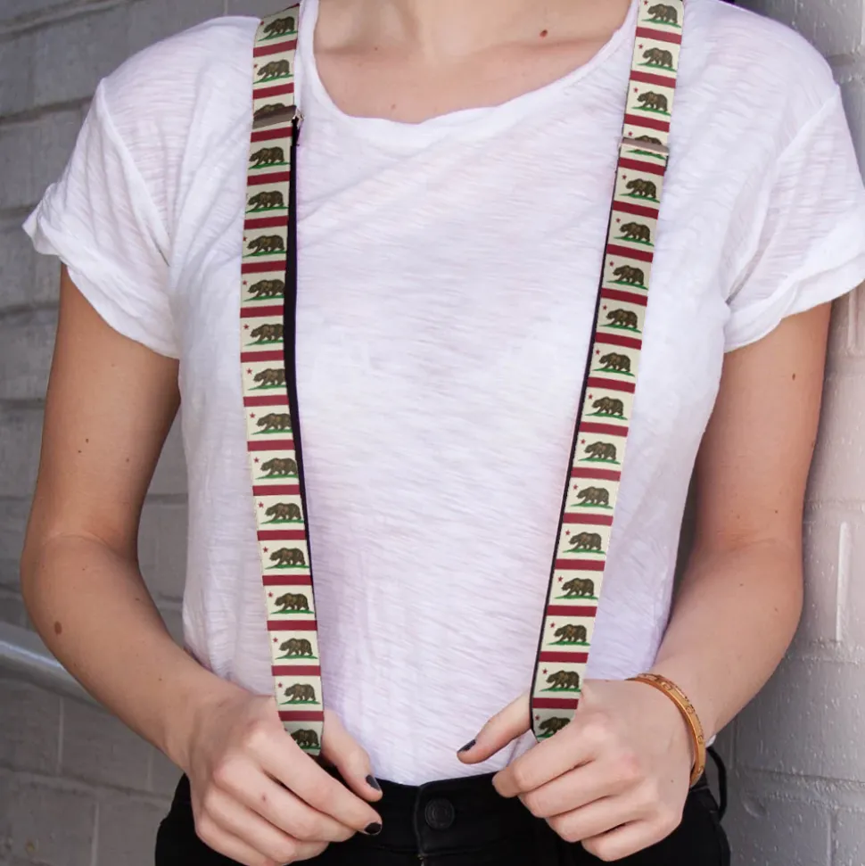 Suspenders – 1.0" – California Flag Bear Weathered White