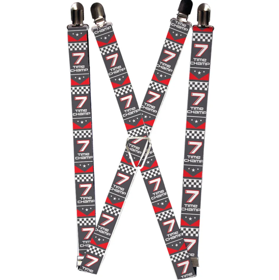 Suspenders – 1.0" – Cars 3 "7 TIME CHAMP" Banner Gray Red White