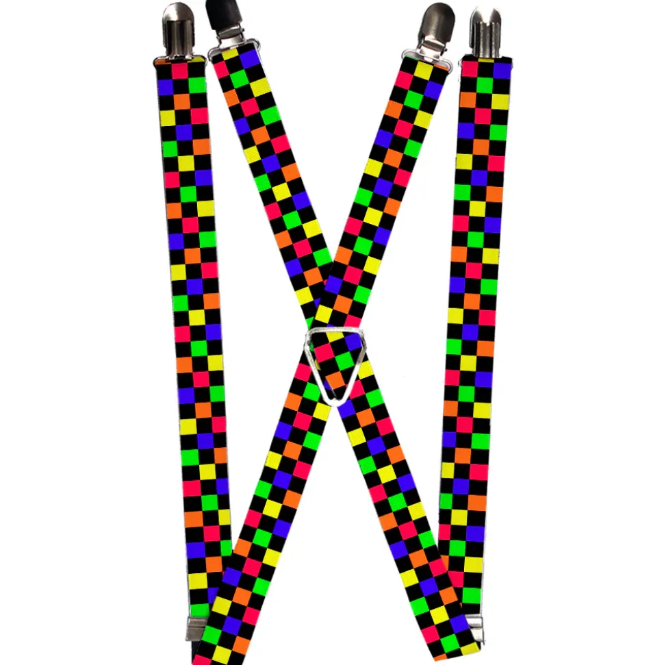 Suspenders – 1.0" – Checker Black/Multi Neon