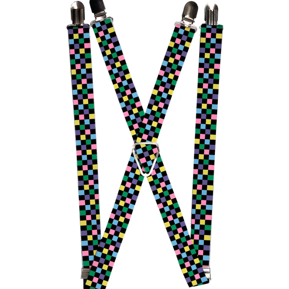 Suspenders – 1.0" – Checker Black/Multi Pastel