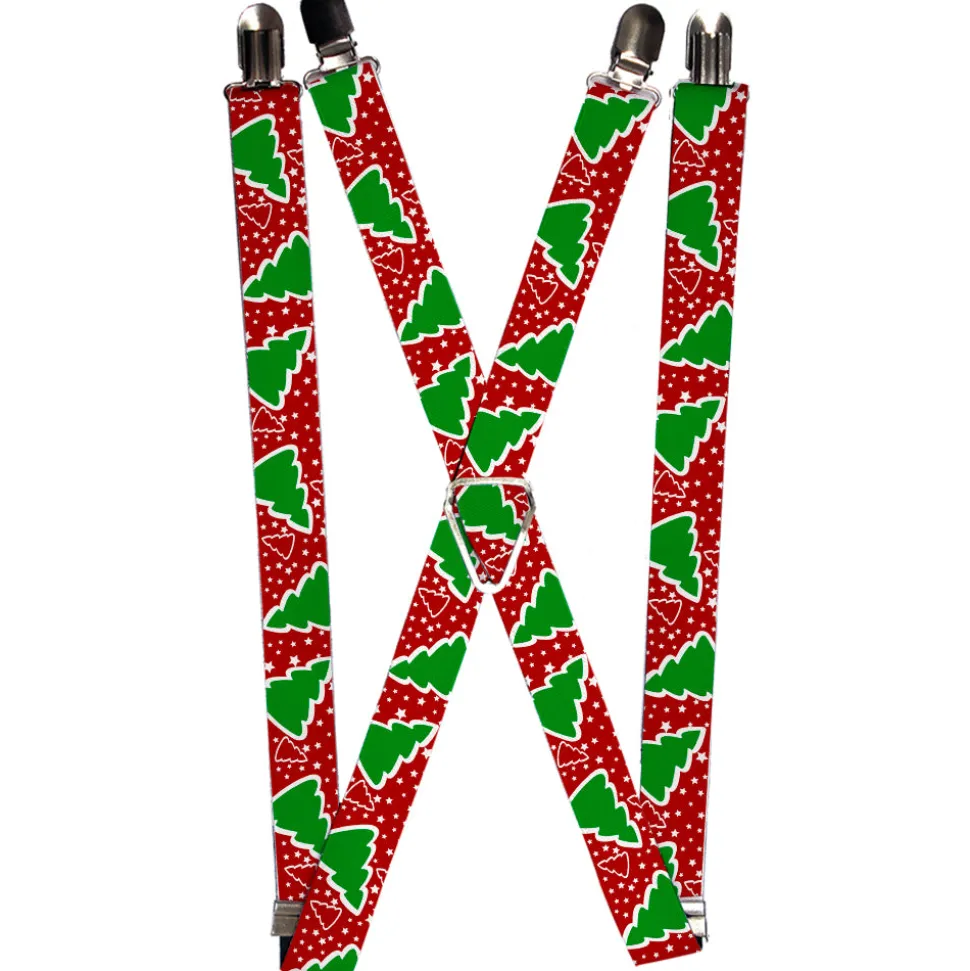 Suspenders – 1.0" – Christmas Trees/Stars Red/White/Green