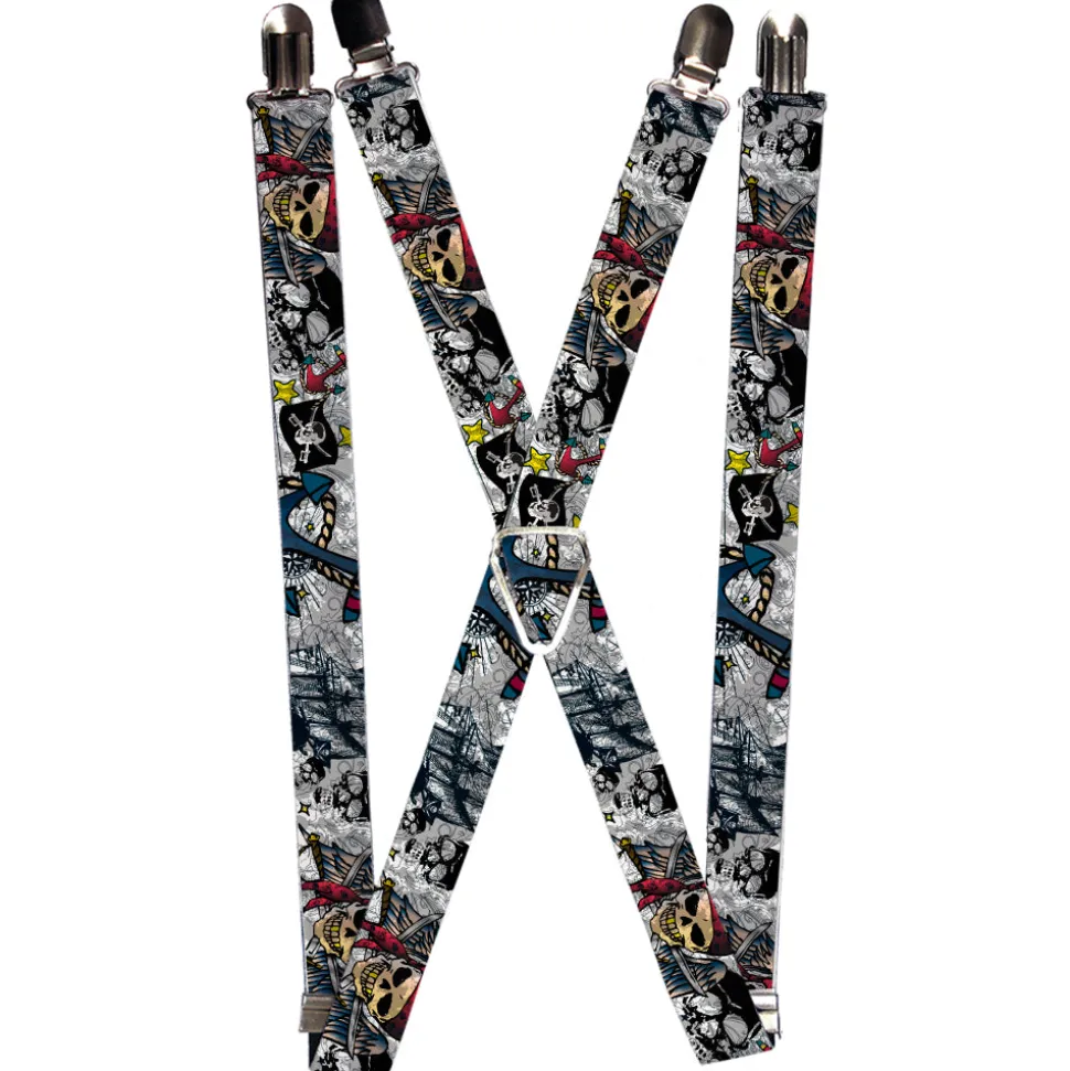 Suspenders – 1.0" – Dead Men Tell No Tales CLOSE-UP White