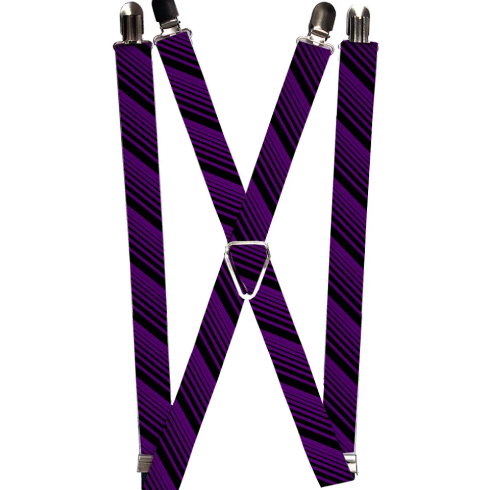 Suspenders - 1.0" - Diagonal Stripes Black/Purple