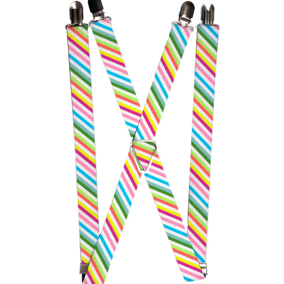 Suspenders – 1.0" – Diagonal Stripes White/Multi Color