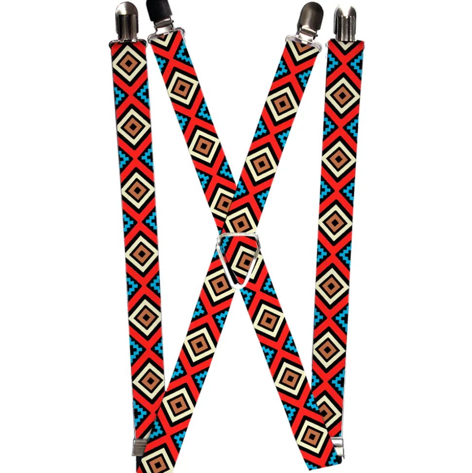 Suspenders - 1.0" - Geometric1 Black/Red/Tan/Brown/Baby Blue