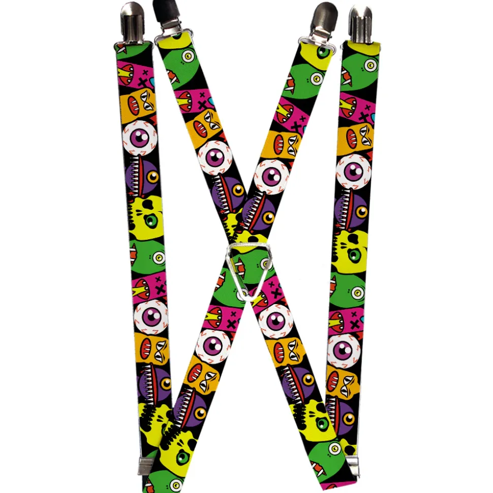 Suspenders – 1.0" – Monsters CLOSE-UP Black