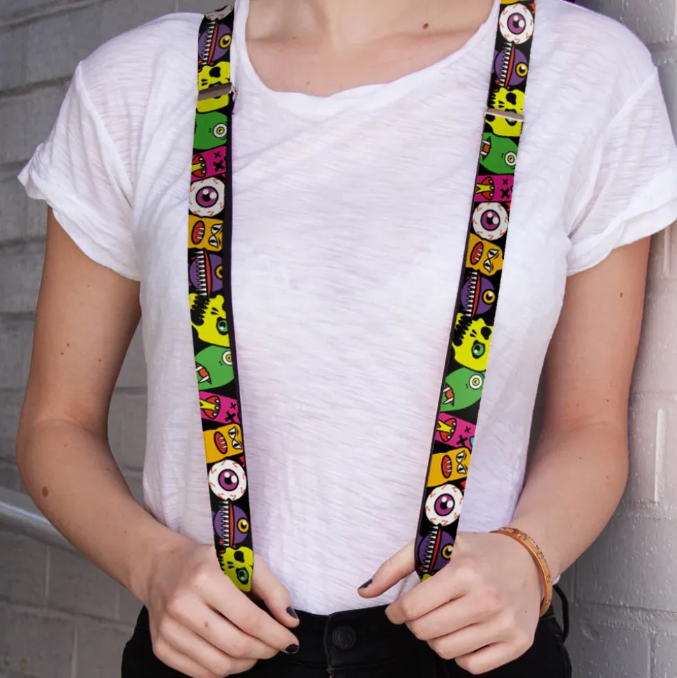 Suspenders - 1.0" - Monsters CLOSE-UP Black