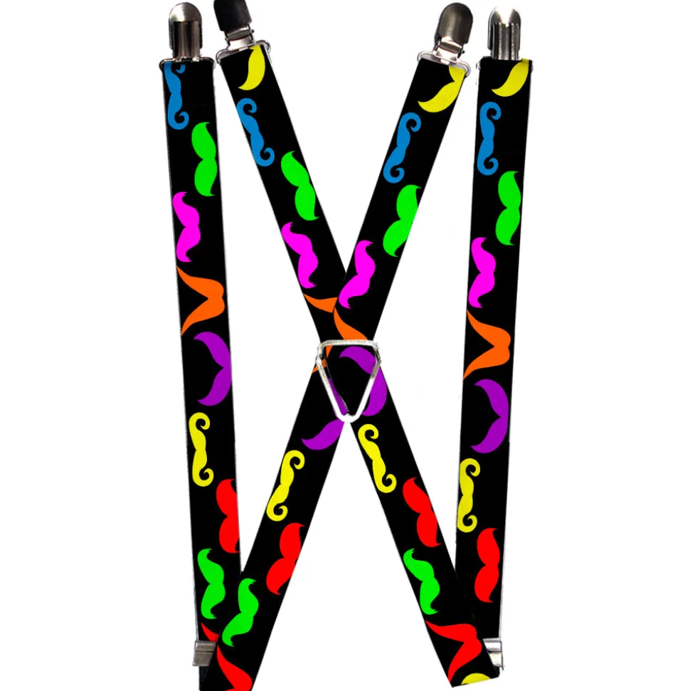 Suspenders - 1.0" - Mustaches Black/Multi Color
