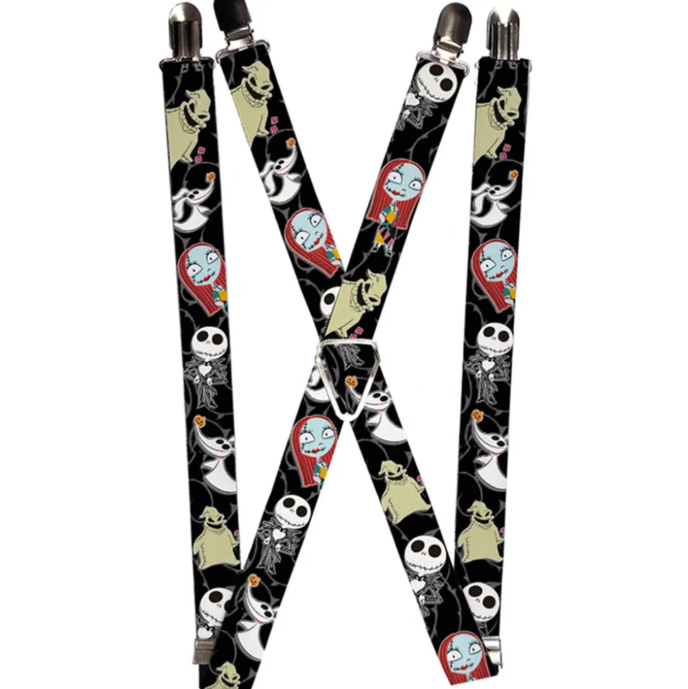Suspenders – 1.0" – Nightmare Before Christmas 4-Mini Character Poses Black Gray