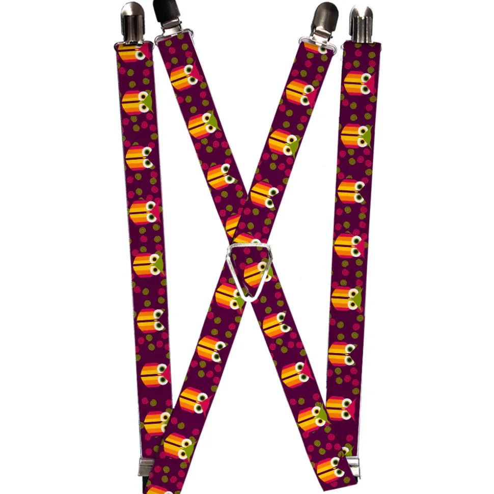 Suspenders – 1.0" – Owls Striped w/Swirls Purple