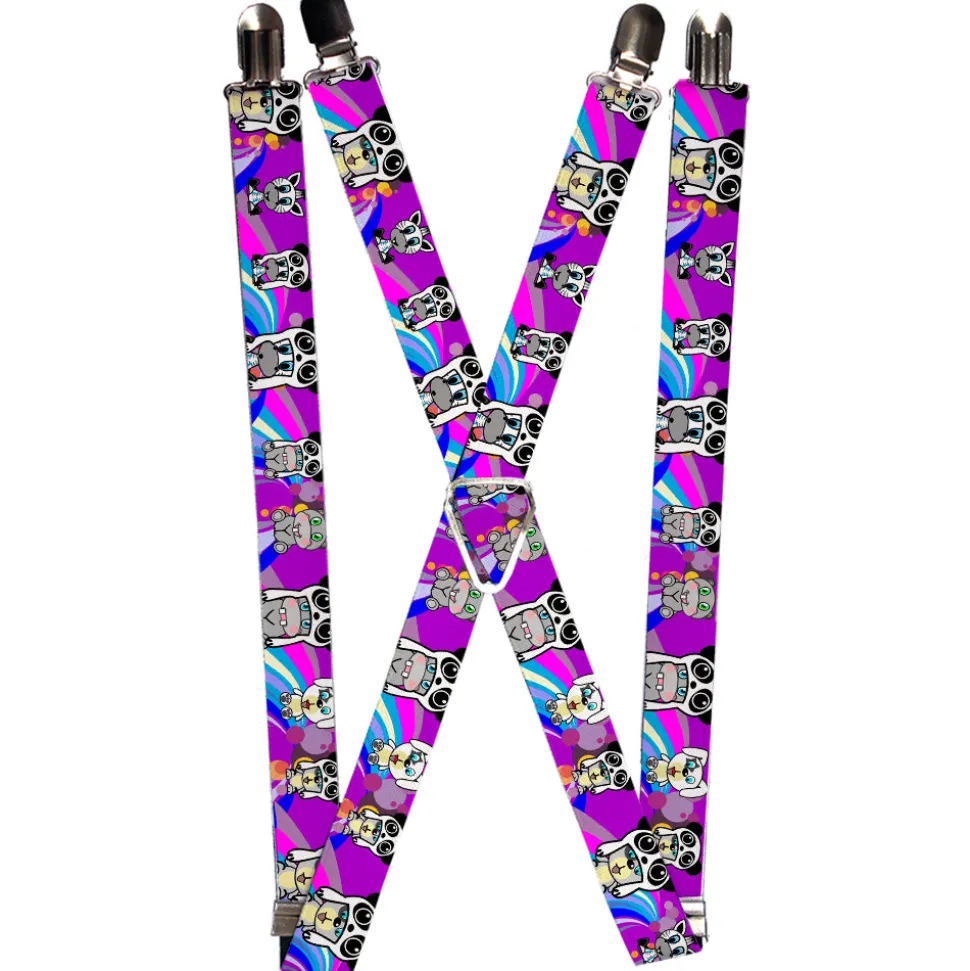 Suspenders – 1.0" – Panda Hat Animals w/Bright Color Burst