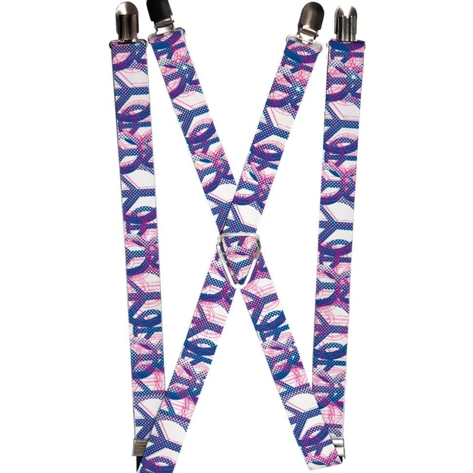 Suspenders - 1.0" - Peace Mixed White/Blue/Pink