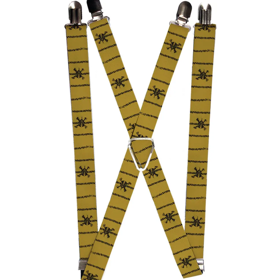 Suspenders – 1.0" – Pirates Dead Men Tell No Tales Skull Icon Rope Tan Black
