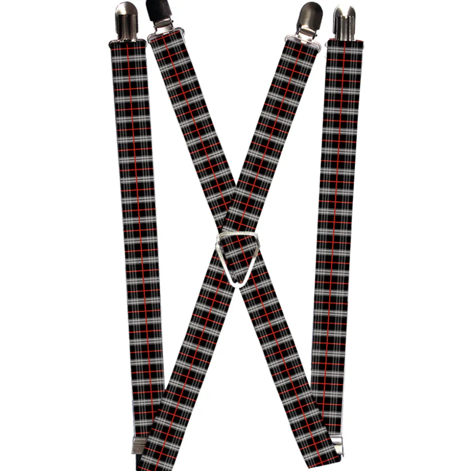 Suspenders – 1.0" – Plaid Black/Red