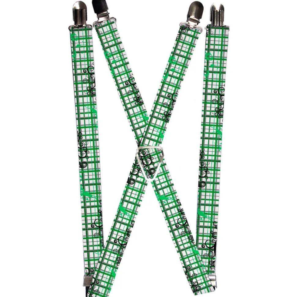 Suspenders - 1.0" - Plaid Curls White/Black/Gray/Green