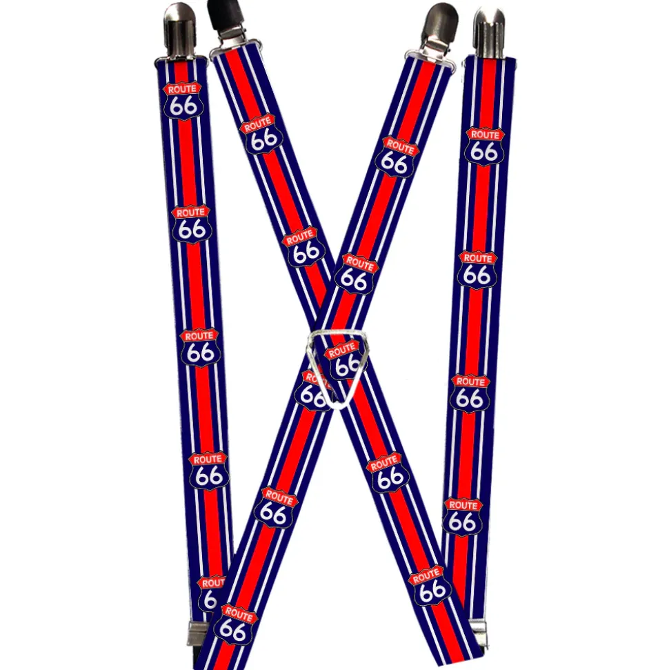 Suspenders – 1.0" – ROUTE 66 Highway Sign/Stripe Blue/White/Red