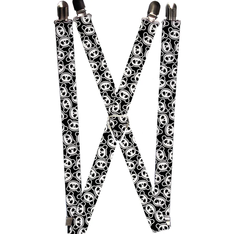 Suspenders - 1.0" - Scattered Panda Bear Cartoon2 Black/White